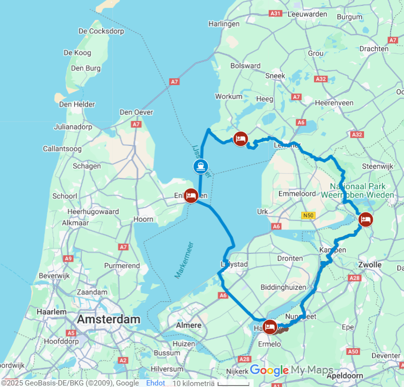 Saatavilla myös pidempi 8 päivän IJsselmeer-järven kierros.