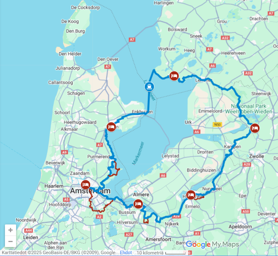 - Lauttamatka Enkhuizen–Stavoren, n. 25 € sis. pyörän